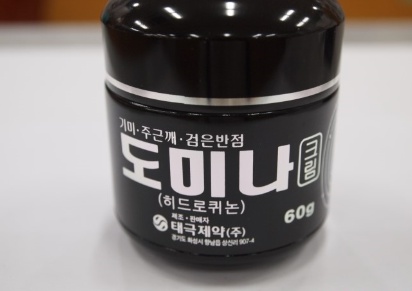 병원처방용 전문의약품으로는 멜라논크림이 있고, 약국에서 구매 가능한 일반의약품은 도미나크림이 있습니다. 전문약과 일반약의 차이점은 전문약은 히드로퀴논이라는 탈색제 성분이 5%함유되어 있고 일반약은 히드로퀴논 성분이 4% 함유되어있습니다. 함량이 좀 더 높고 그래서 이제 전문약과 일반약으로 구분이 됩니다.